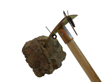 They are a perfect balance of weight and size. The black pick version is laser cut from 3/16″ micro-alloyed born steel, 18″ solid hickory American made handle with a solid 1/4″ rivet. The gold pick versions are made from 1/4” AR (Abrasion Resistant) plate that is heat treated to a Rockwell Hardness rating of 50 with the same 18" solid hickory American made handle with a solid 1/4" rivet. The head with two flush embedded rare earth magnets (patent pending) creates two magnetic surfaces on each side of the blade, making for quick iron identification and retrieval.