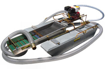 The KEENE 3" JET FLARE design provides excellent fine gold recovery. The jet flare and water level sluice box give 30% more suction, allowing dredge depths of nearly 30 feet. Also, the state-of-the-art sluice box is more efficient, compact, and lighter. The 3” dredges are powered by P160 GPM pump with a Honda GX120 engine. These dredges can be ordered in several versions and can also be converted into a high banker. Models with a suction nozzle are recommended for shallow water. T80 air compressor can be added to both size dredges.