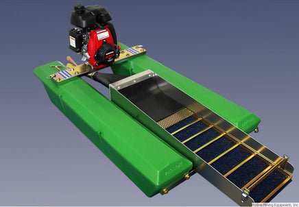 The Proline 2" dredge has seen many improvements, resulting in a smaller and more portable unit, with increased power and features normally found only on larger dredges. It is powered by our Honda GXH50/HP100 pump package, which produces well over 100 gallons per minute, with twice the pressure of our previous pumps. The Honda engine is very quiet, offering nearly twice the fuel economy of the 2-cycle engines, and it eliminates the need to mix gas and oil. Our HP100 pump is manufactured with the same quality and features found on our larger pumps, such as the "flusher port," which supplies water pressure to run a flusher nozzle for cleaning crevices. The Proline was the first 2" dredge with this feature. Due to recent changes in the pump and jetting system on this dredge, the suction power has dramatically increased. This increase in power led to a new classifier with a riffle system that produces a more effective low-pressure vortex behind the riffles themselves, improving fine gold recovery. Our unique one-piece classifier/riffle system simply unlatches and lifts out of the sluice box, which makes for fast and easy cleanups. We still use "Nomad" matting for the entire length of the sluice box.
