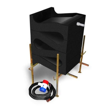 You can believe the hype! This piece of equipment saves time without losing your gold. The Gold Cube will reduce your concentrates by easily 500% or more. The LDPE plastic design is light weight and easy to assemble/disassemble. Special VORTEX matting and G-FORCE water flow can sort out the ultra heavies reducing buckets of concentrates to handfuls in minutes. The deluxe kit includes 3 stack, stand & 12 V pump. Battery not included.