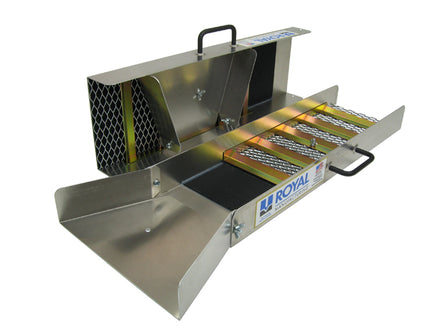 0.063” Aluminum box with laser cut zinc plated 1 piece riffle, ribbed rubber mat for quick ID of gold secured with 3M brand double back tape and expanded metal creates more crevices for more gold to be captured.